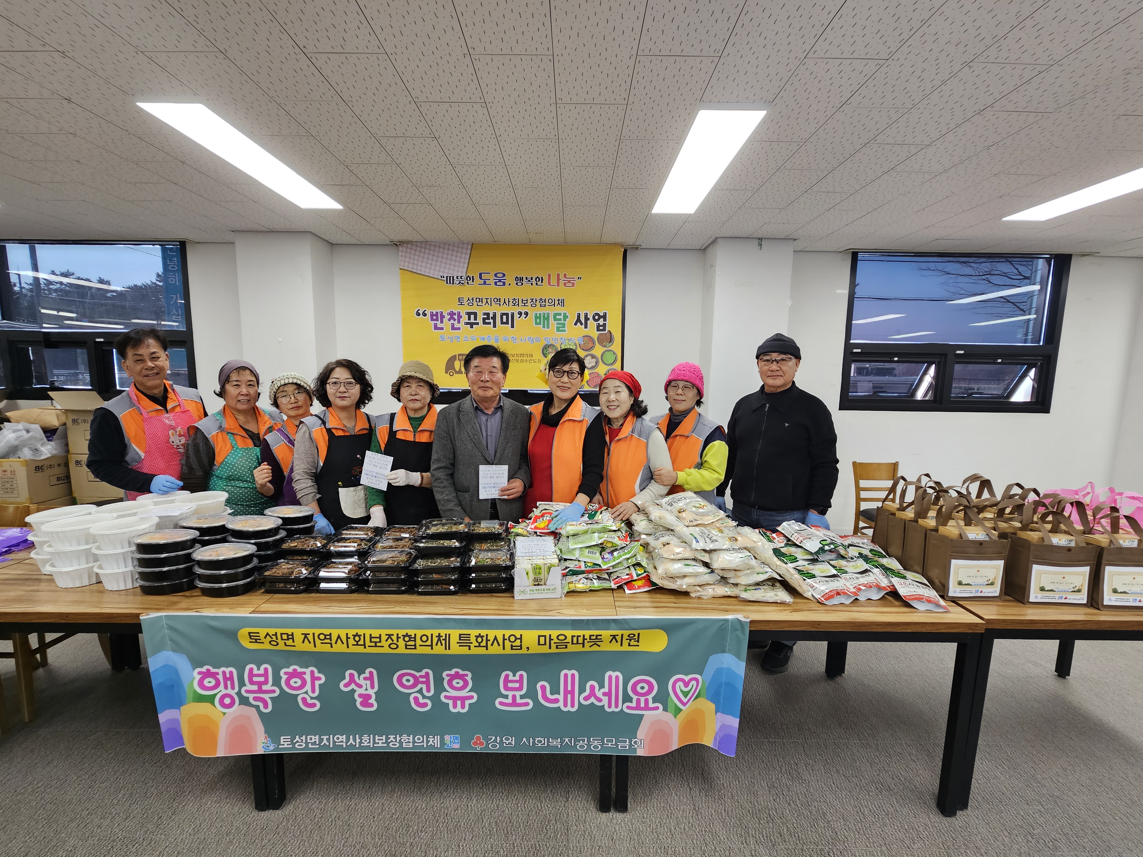 토성면지역사회보장협의체(회장 강대헌)는 설 명절을 맞아 토성면 취약계층 25가구를 방문하여 명절 선물과 정성껏 준비한 반찬을 직접 전달하며 따뜻한 이웃사랑을 나누었습니다.